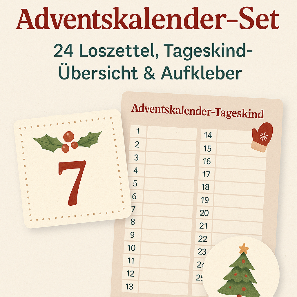 Adventskalender in der Grundschule: Liebevolle Loszettel & Tageskind-Übersicht für eine magische Dezemberzeit