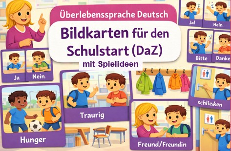 „Überlebenssprache Deutsch“ – Bildkarten für den Schulstart (DaZ) mit Spielideen