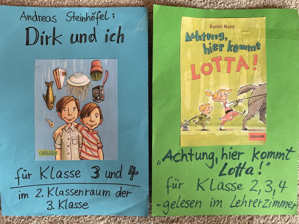 Vorlesestunde an unserer Grundschule Vor den Osterferien fand wieder unsere traditionelle Vorlesestunde statt. Jede Lehrerin wählte dafür ein Vorlesebuch aus und machte dafür im Vorfeld Werbung.Unser Vorgehen ist dabei folgendes: Zu Beginn der Woche hängt jede Lehrerin ein „Werbeplakat“ am Whiteboard im Schulgebäude auf.Dieses enthält den Buchtitel, eine kleine Zeichnung oder Illustration, eine Altersangabe (wenn […]